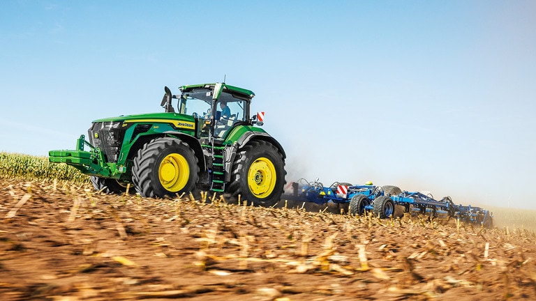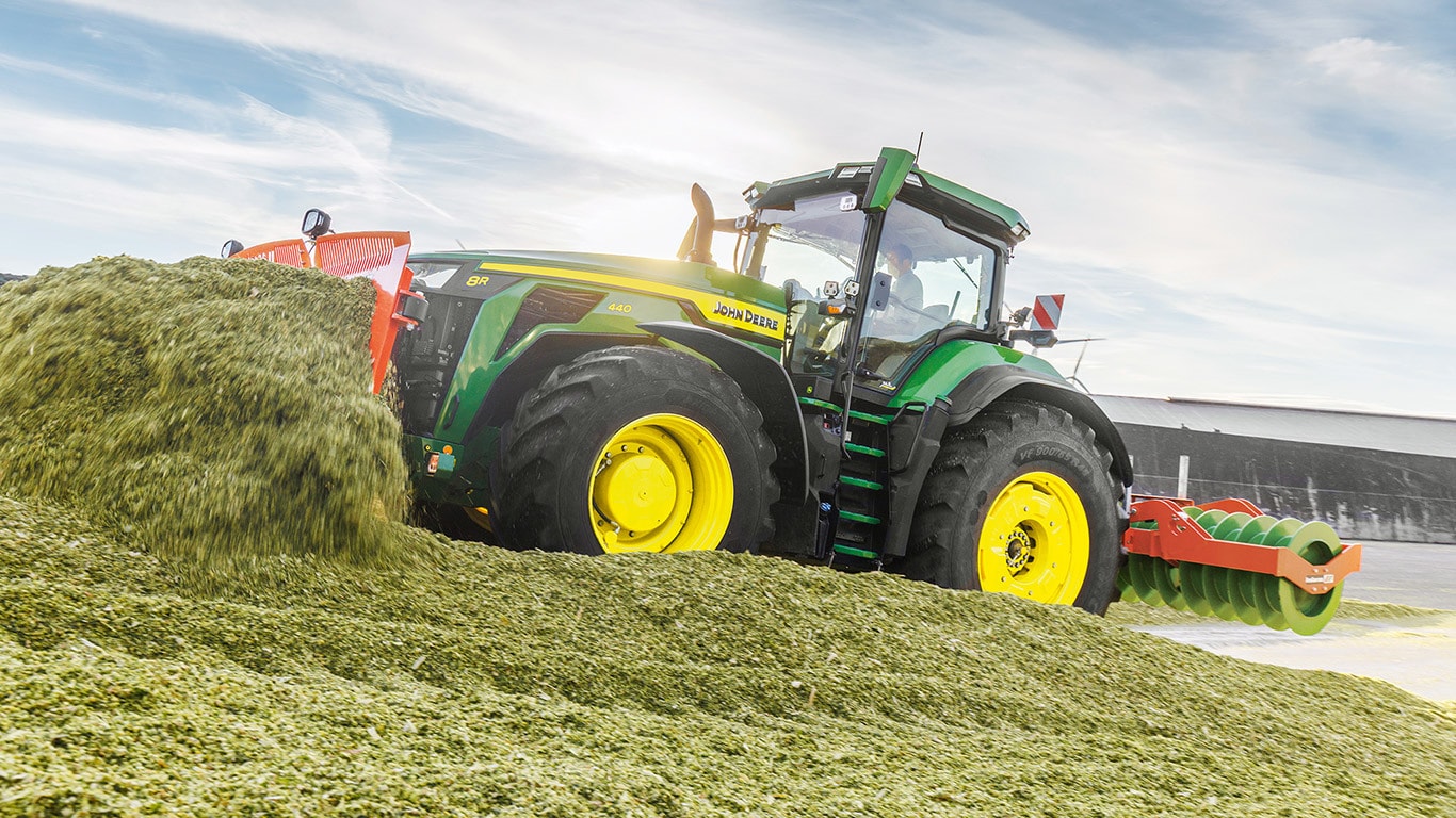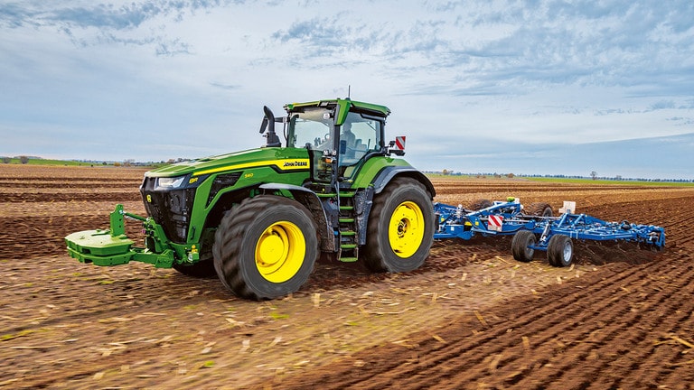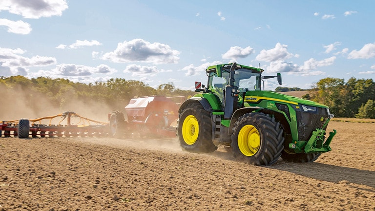 Noile tractoare High Horsepower 8R putere asigură puterea de tracţiune de care aveţi nevoie pentru cele mai solicitante instrumente. Cu gestionarea inteligentă a puterii maxime, motorul JD14 oferă până la 634 CP exact atunci când este necesar pentru productivitate maximă în orice condiţii. Unicul sistem eAutoPowr™ asigură o accelerare fără trepte şi un transfer de putere cu până la 8% mai bun în comparaţie cu transmisiile standard fără trepte hidromecanice*. Noile modele 8R High Horsepower sunt echipate cu pneuri spate de până la 2,30 m, pneuri faţă de până la 1,85 m şi un sistem central de umflare a pneurilor pe o singură linie, pentru protecţie superioară a solului, transfer optim al puterii şi versatilitate.
