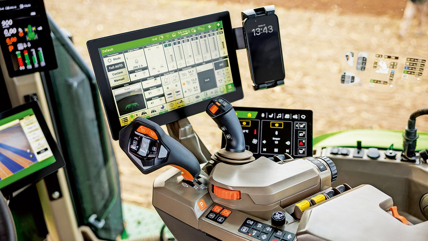 Tractoarele din seria 8, dotate cu cabină de 3,30 m³ CommandView™ 4 cu performanţă dovedită, cu suspensie reglabilă sau ActiveSeat™ II, pivotare a scaunului la 65°, trei suporturi pentru picioare, radio cu ecran tactil a doua generaţie cu Apple CarPlay wireless® şi Android Auto™, plus un sistem audio premium 6.1, stabilesc etalonul pentru confortul cabinei. Noul scaun reglabil electric, cu funcţie de memorie, ventilaţie a gâtului şi opţiuni de masaj oferă confort premium chiar şi în zilele lungi de lucru. CommandARM de gen. următoare™ cu noul afişaj pentru utilităţi, noul CommandXPplus sau CommandXPro vă permite să controlaţi foarte uşor toate funcţiile cheie.